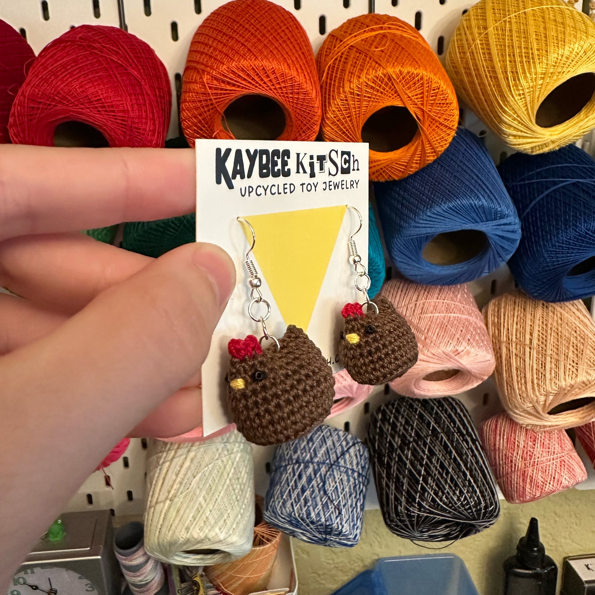 MADE TO ORDER: Brown Squat Chicken Earrings