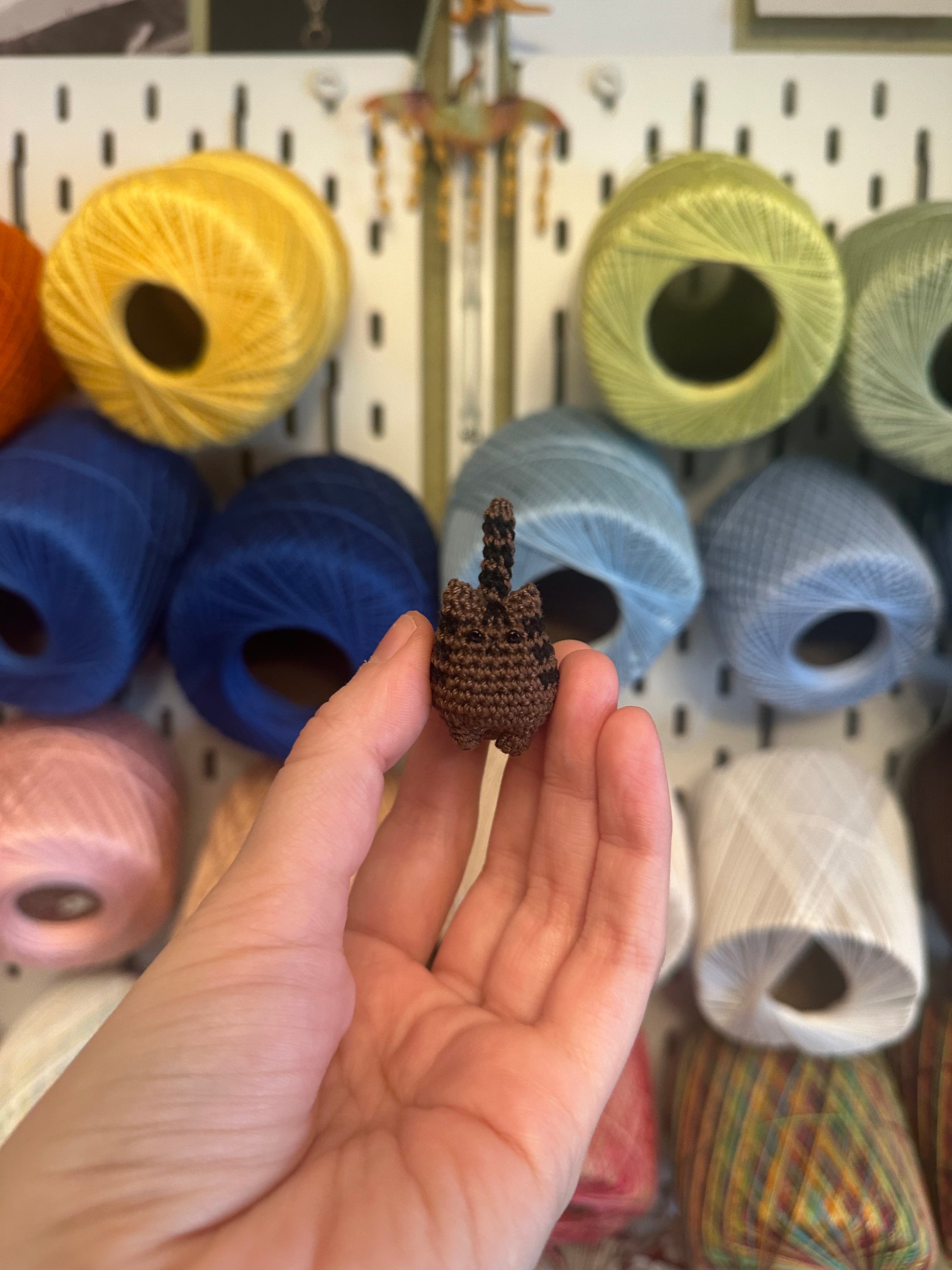 Who doesn't need the cutest, tiniest little crocheted cat in their life? Each cat is crocheted by me using Bigbebez's patterns (available here) scaled down to miniature size. They measure roughly 1" x 1.5" x 2".