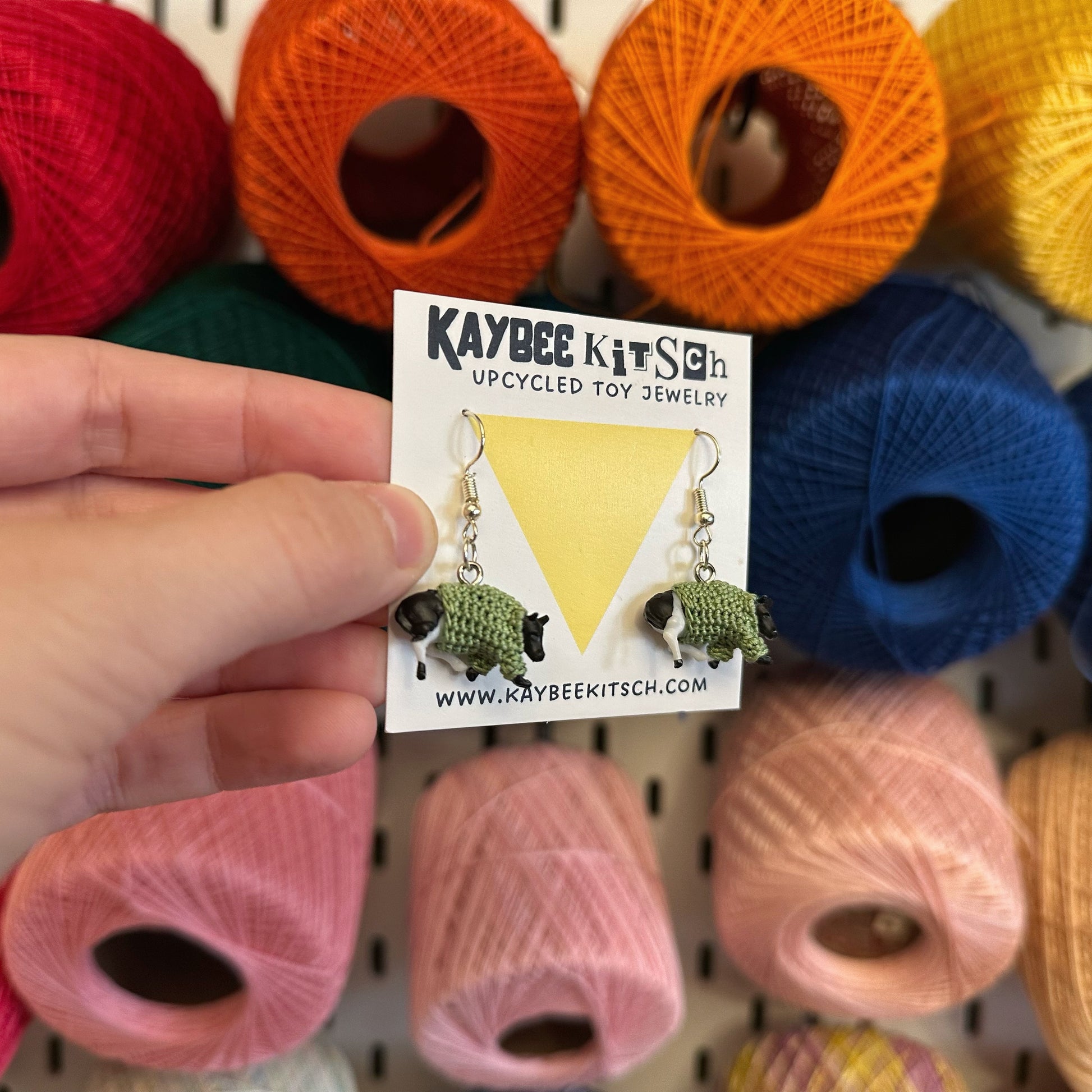 Cow Small "Sweater Friend" Earrings - Sage Green Sweaters
