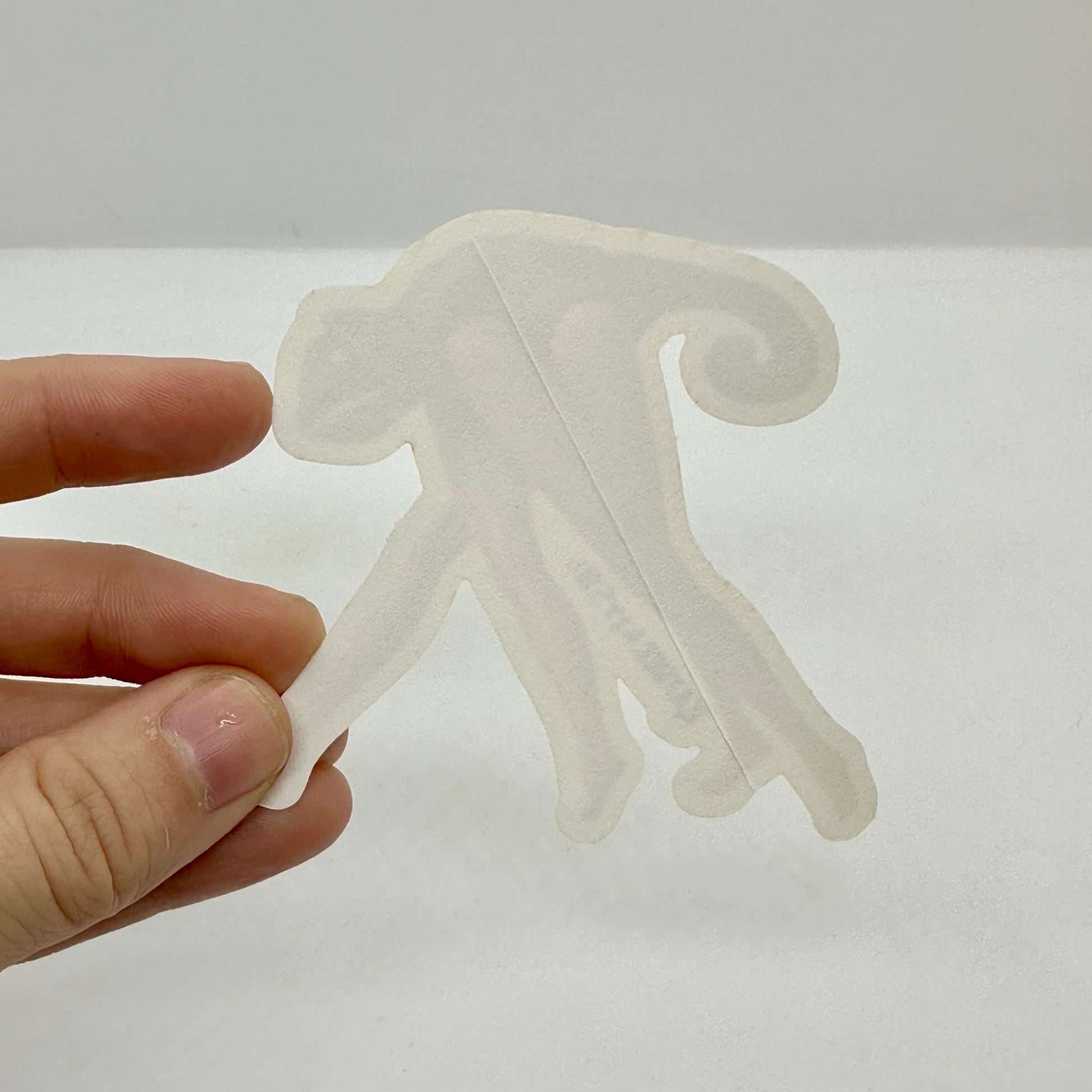 Stickers measure roughly 3" by 3" and are made of waterproof vinyl.