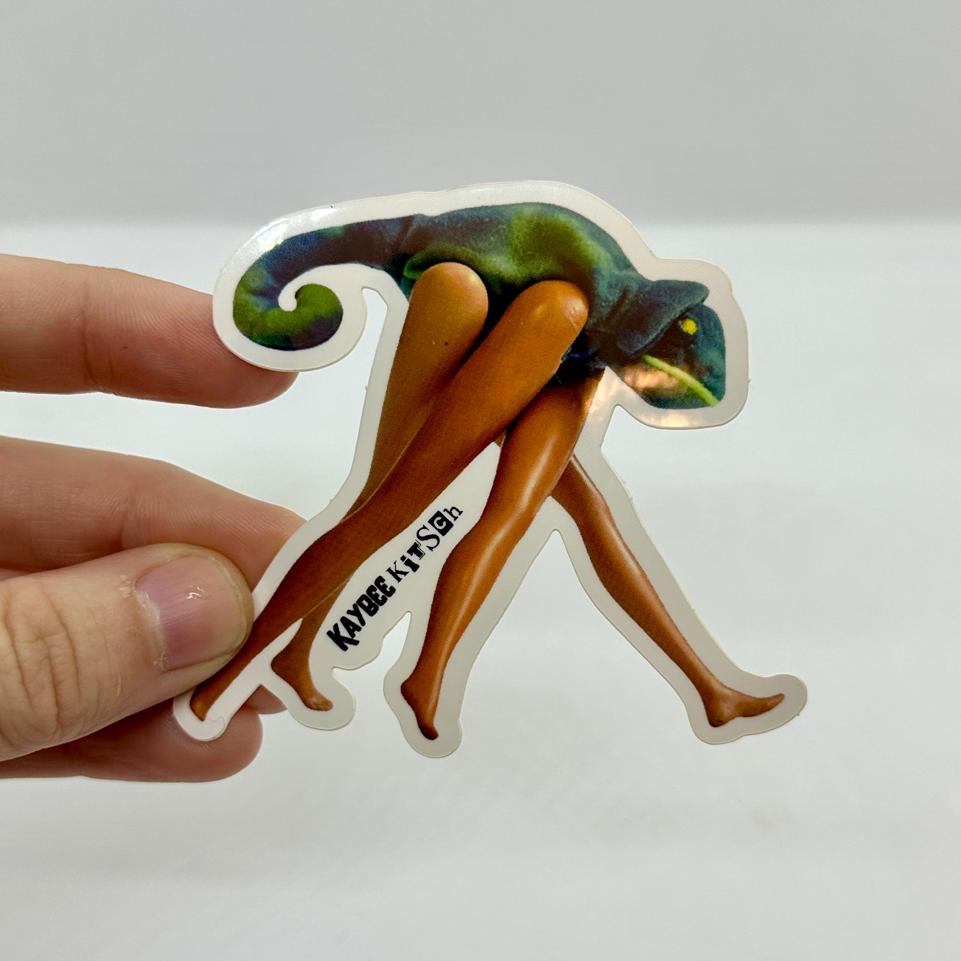 Legs inspired Kat to do more work with found objects, specifically thrifted toys, which led to the birth of Kaybee Kitsch. Now, you can bring home Legs for yourself in sticker form and worship her to your heart's content!
