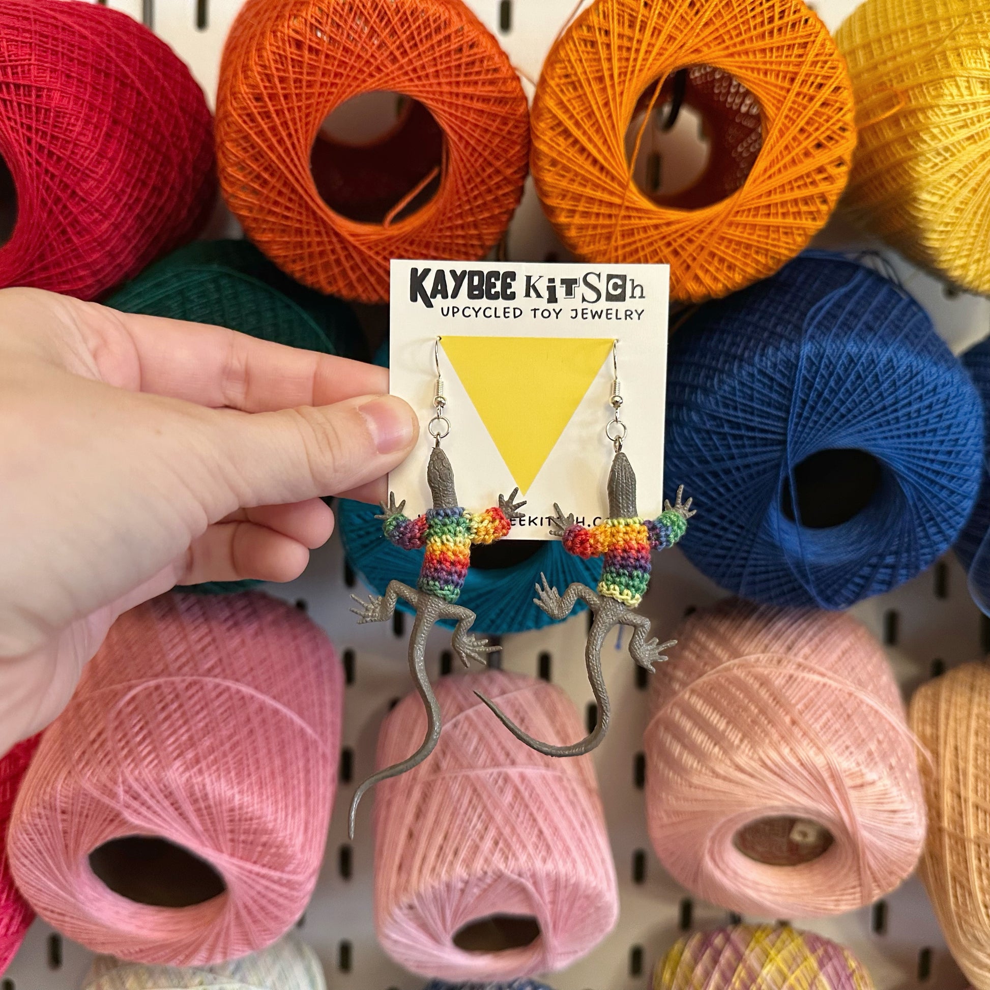 Gray Lizard “Sweater Friend” Earrings - rainbow sweaters