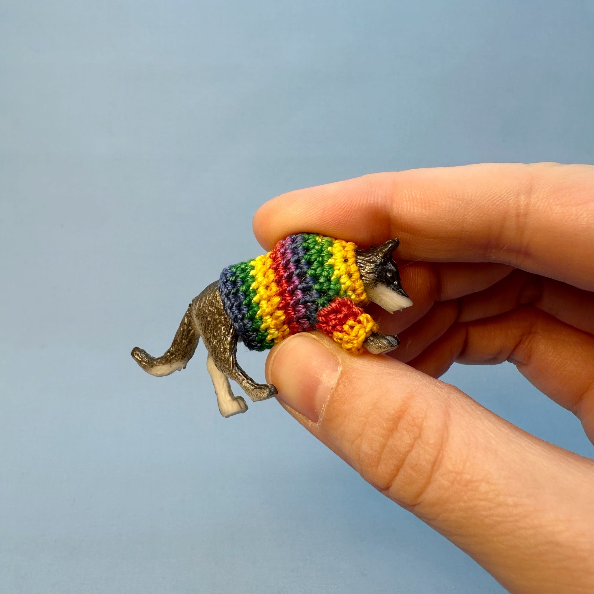 Wolf "Sweater Friend" Figurine - Rainbow Sweater