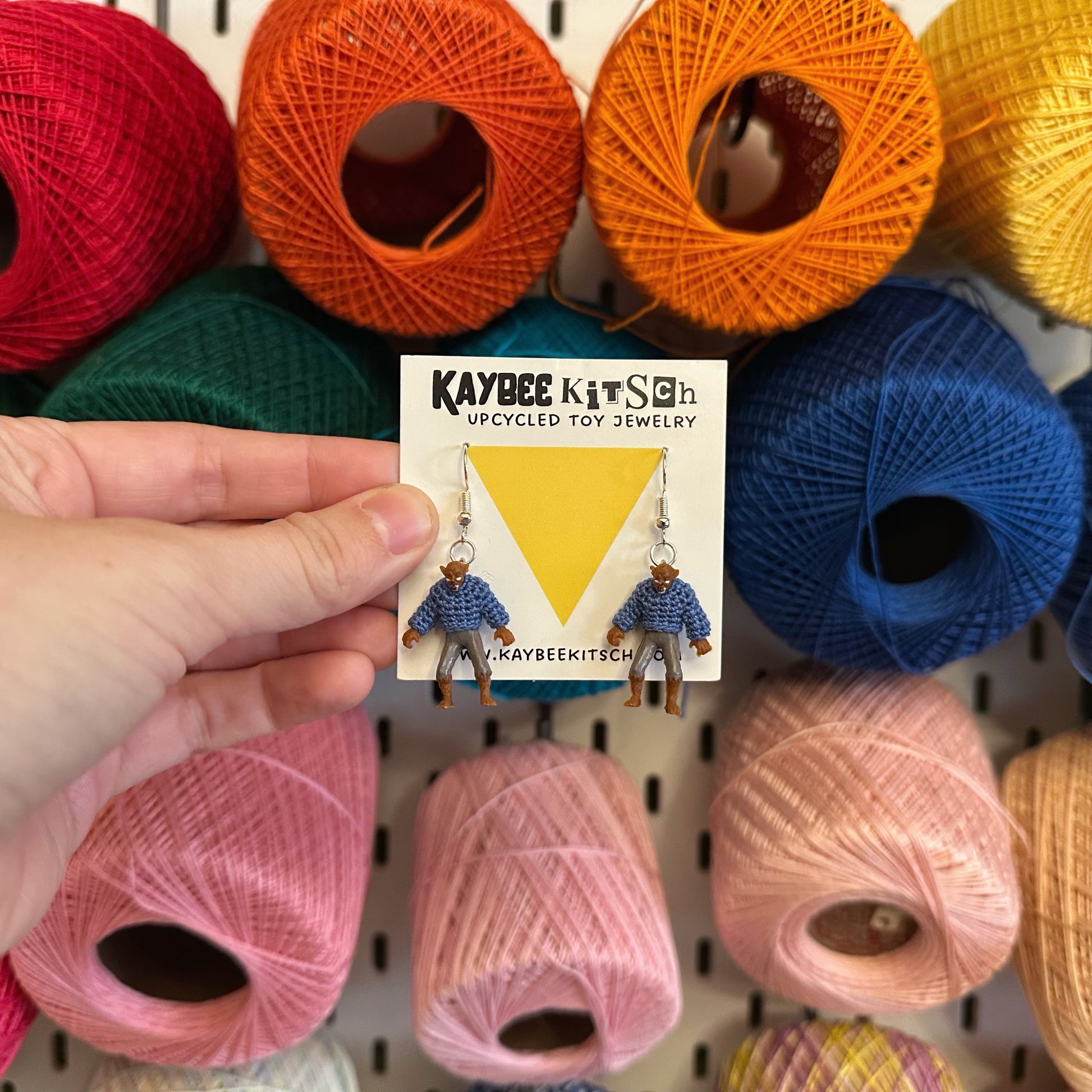 Kaybee Kitsch earrings are unique, comfortable, and will earn you compliments anywhere you go! These wolf men measure 1" x 0.25" and are dressed up in mini crocheted sweaters.
