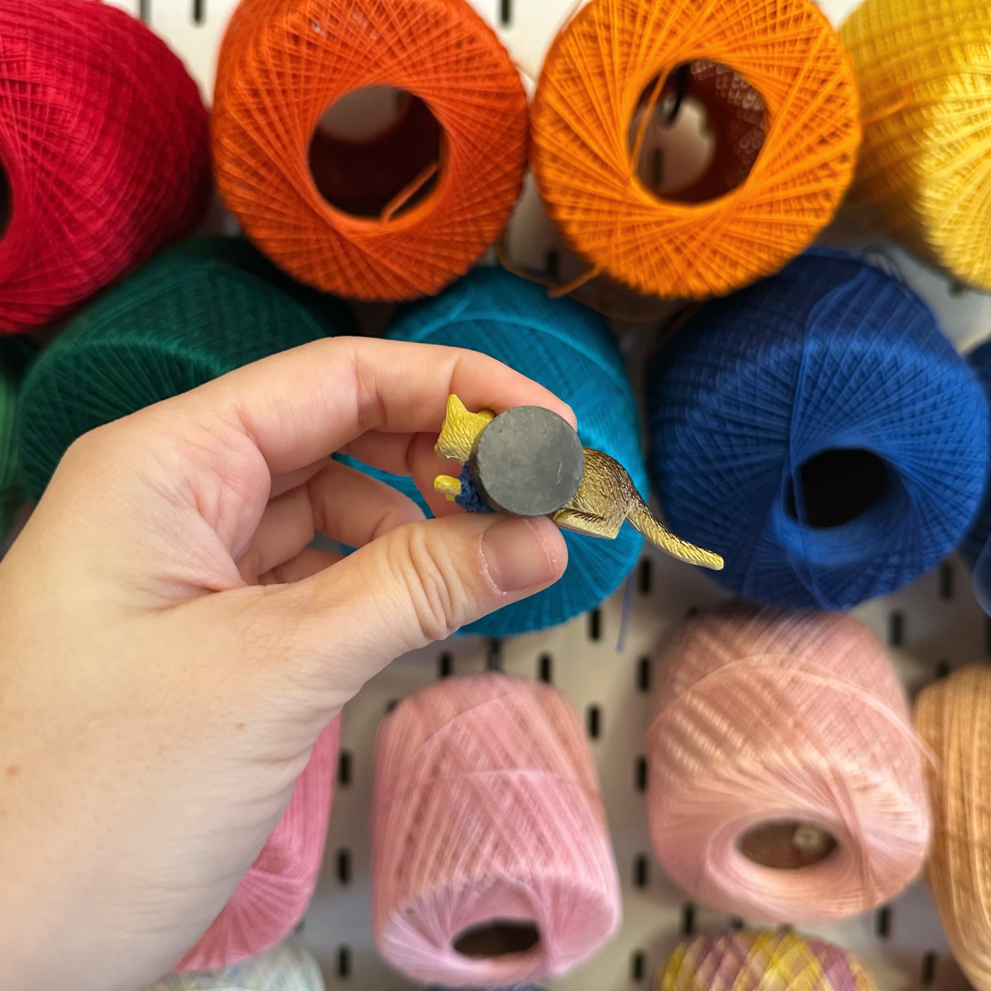 Kaybee Kitsch magnets will bring some fun to anyone's fridge. This magnet measures 0.5” x 2" and is dressed in a mini blue crocheted sweater.