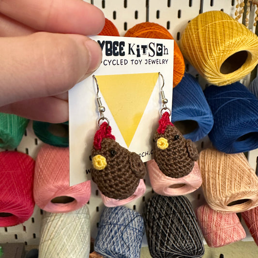 MADE TO ORDER: Brown Squat Chicken Earrings